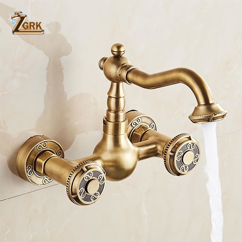 Us 60 81 Antique Brass Bathroom Faucet Dual Handle Wall Mounted Ceramic Single Hole Difference Hot Cold Water Eminent Shower Faucet In Shower
