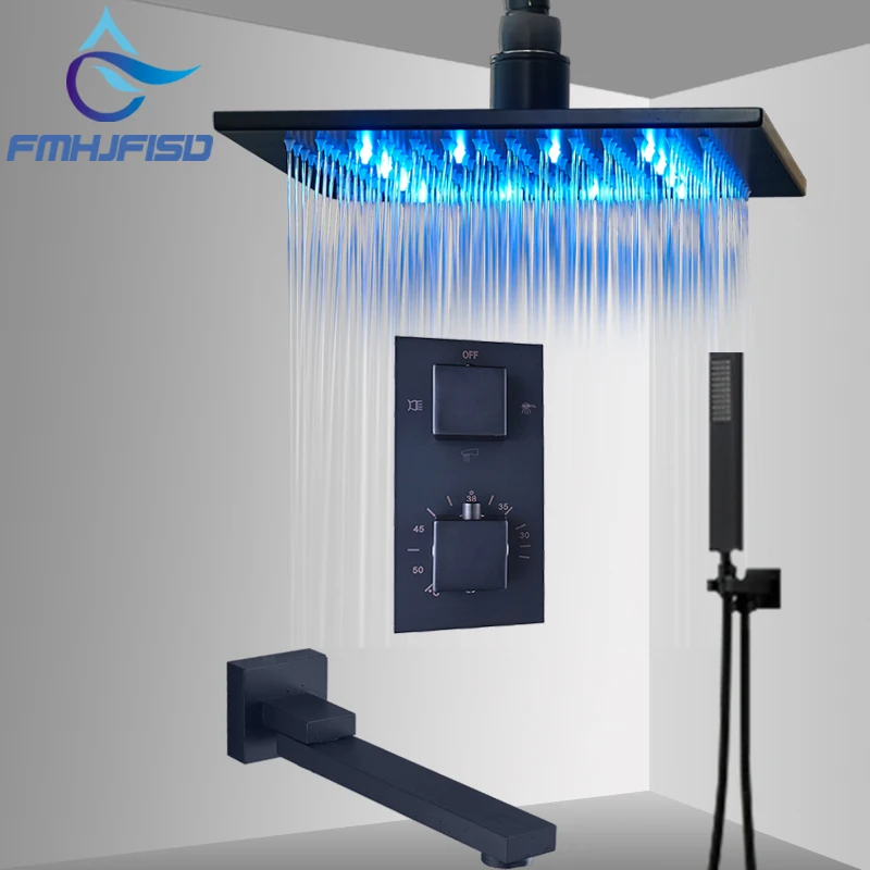 Us 130 8 40 Off Concealed Bath Shower Faucet Thermostatic Led Bathroom Faucet Sets Brass Top Over Sprayer With Rotate Spout In Shower Faucets From
