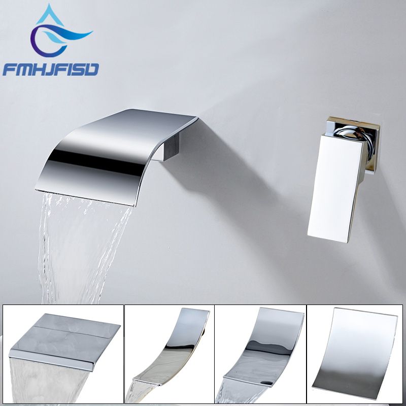Wall Mount Curved Spout Waterfall Bathroom Sink Faucets Widespread Bath And Shower Mixer Basin Tap Vessel Vanity Faucet Chrome Finish Intl