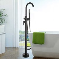 Round Black Bathtub Floor Standing Faucet Mixer Single Handle Mixer Tap Waterfall Bathtub Shower Bathroom Faucet Free Stand Faucet